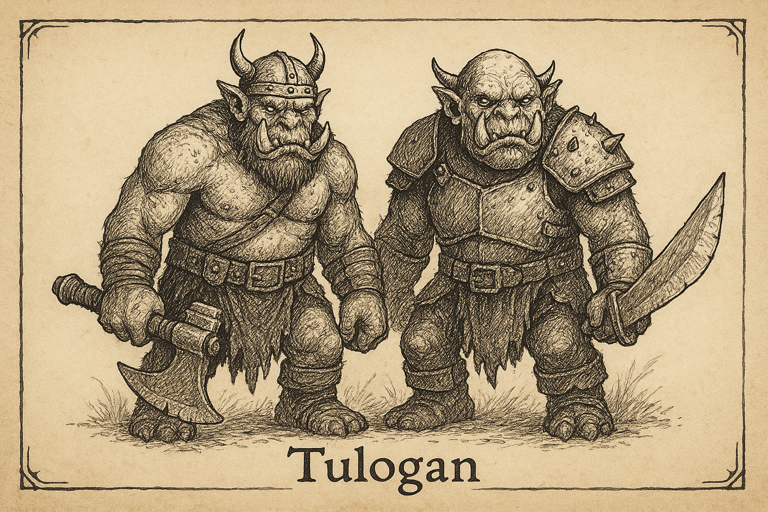 Their weapons are crude, but lethal. Rusty cleavers, chipped axes, and spiked clubs — all likely to be poisoned, or just filthy enough to infect anything they cut. Tulogan don’t live long, but they don’t seem to care. They’re bred for war, and they die by the dozens in it.